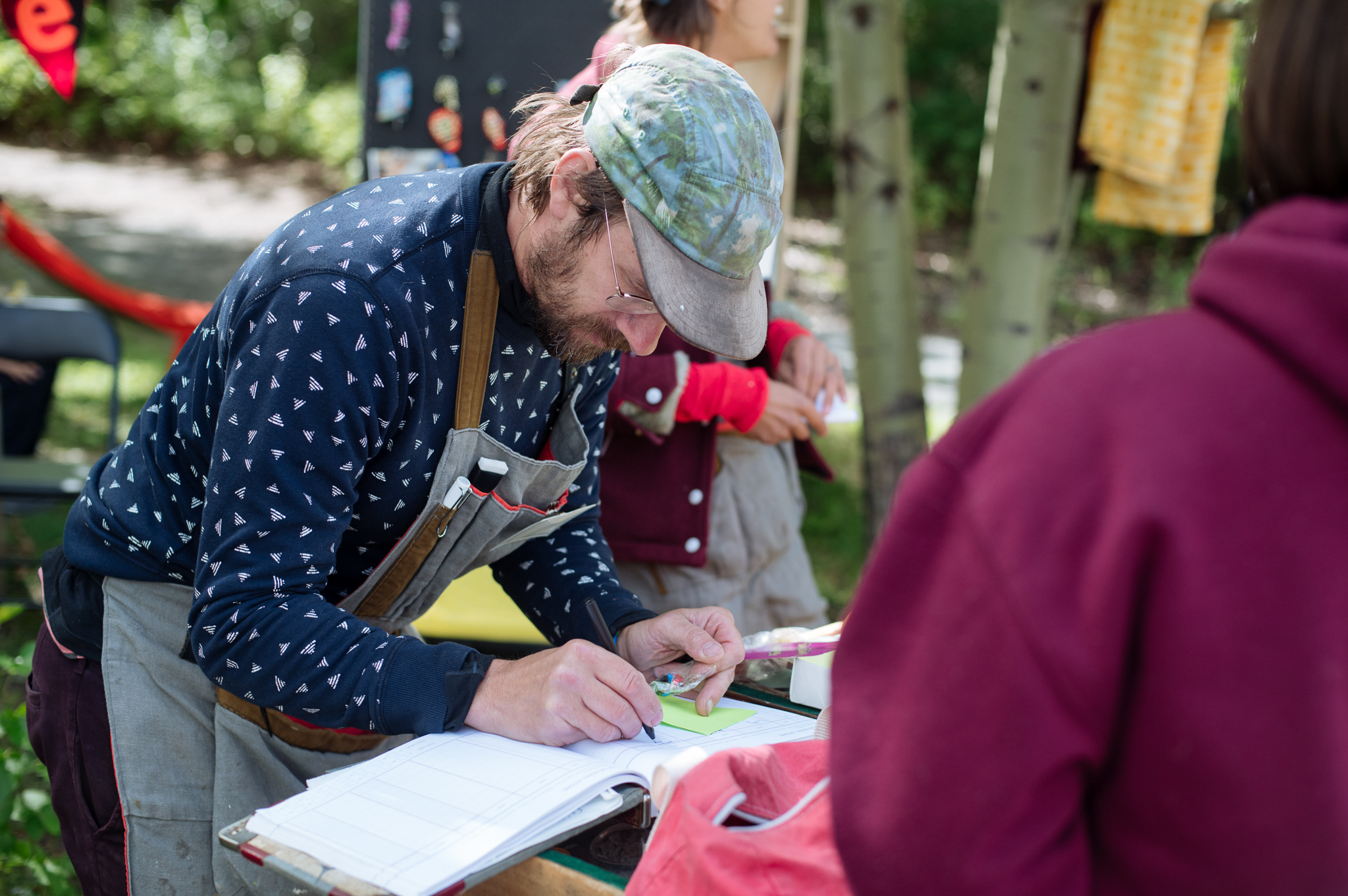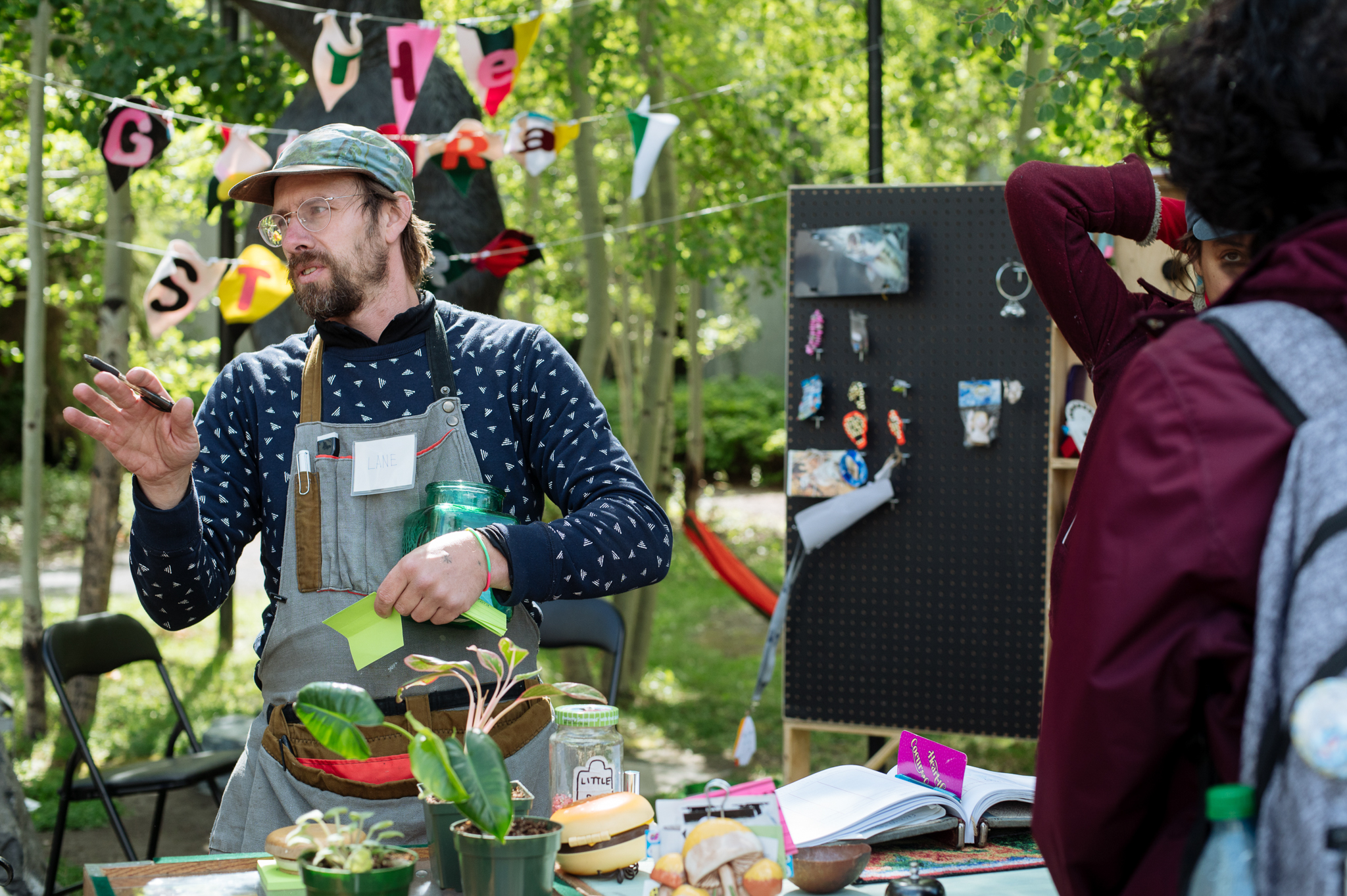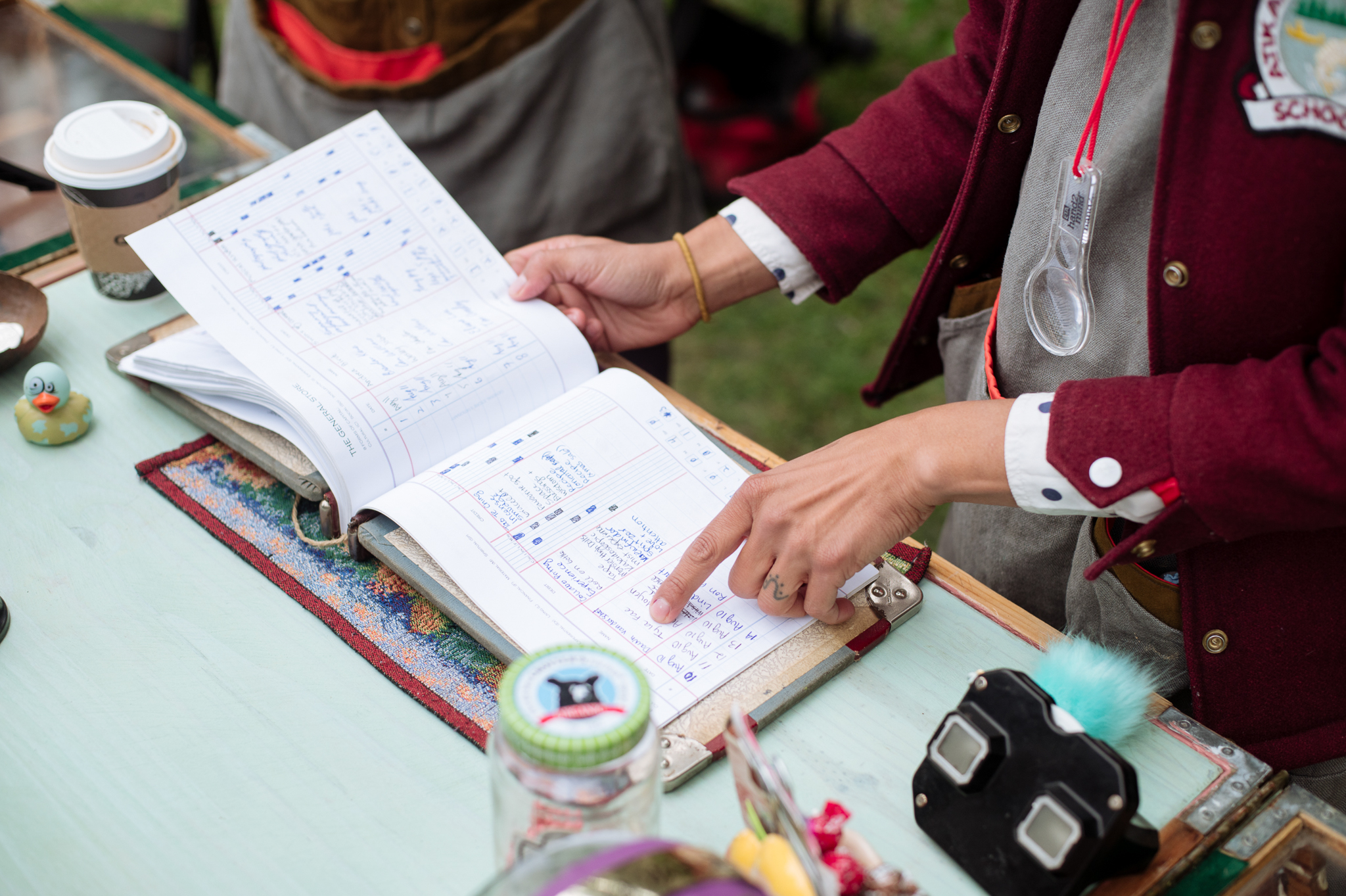 We are Lane Shordee and Nikki Martens, a creative duo investigating urban sustainability, ecology, and the economy via performance & installation. Our General Store is the first pop-up store that trades in the eight different forms of capital: Material (M), Intellectual (I), Living (L), Spiritual (Sp), Financial (F), Social (So), Experiential (E), and Cultural (C). At The General Store we recognize that it is the sum of these eight forms that contribute to a thriving, holistic, and sustainable community. The store becomes a research tool to see how these different forms of capital intermingle and coexist. Each iteration of the store begins with a varied stock of goods that gets us going: coffee, jokes, pins, and haircuts for example; but our inventory is primarily sourced from what the community has to offer and is willing to trade. These trades are documented within our sacred ledger book, which acts as an organic narrative of interactions. Past recordings include: “a beet for a beat”, “witch protection for craft supplies”, and our ever-popular “coffee for a joke”. Trades range from the ephemeral to the tangible, and together become an all day act of participant/artist based performances driven by the question of value. Fleeting goods, such as life stories or sage advice are collected as audio or video, which can then be traded back to participants in the form of ‘Cultural (C)’ or ‘Intellectual (I)’ capital. Physical objects become vectors for the exchange of ideas. Ultimately we are asking our beloved customers what has value to them, how do we measure that value, and how do we come to an equally beneficial exchange?