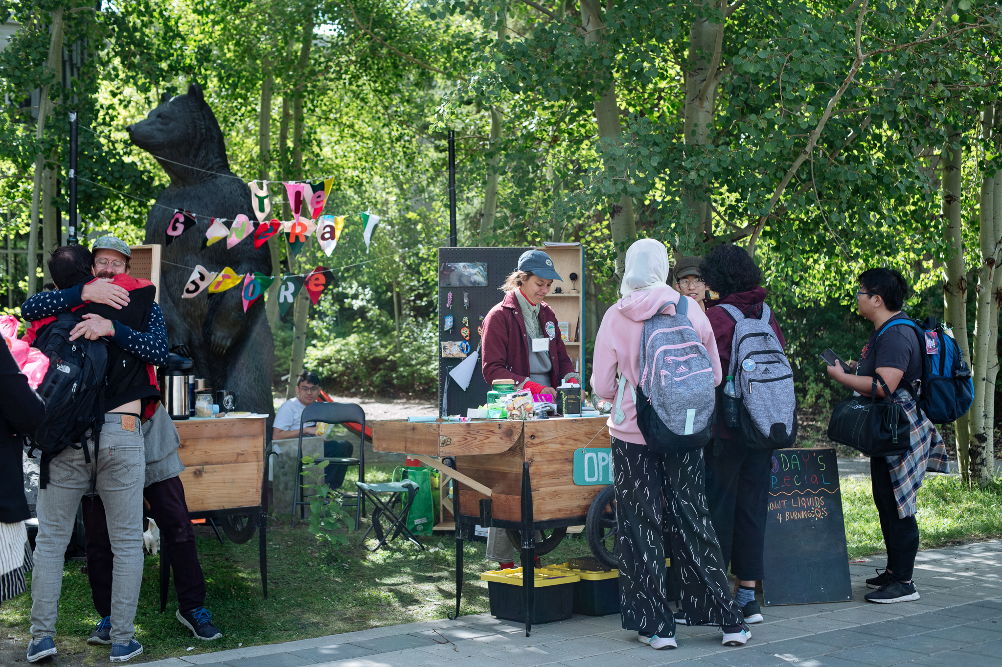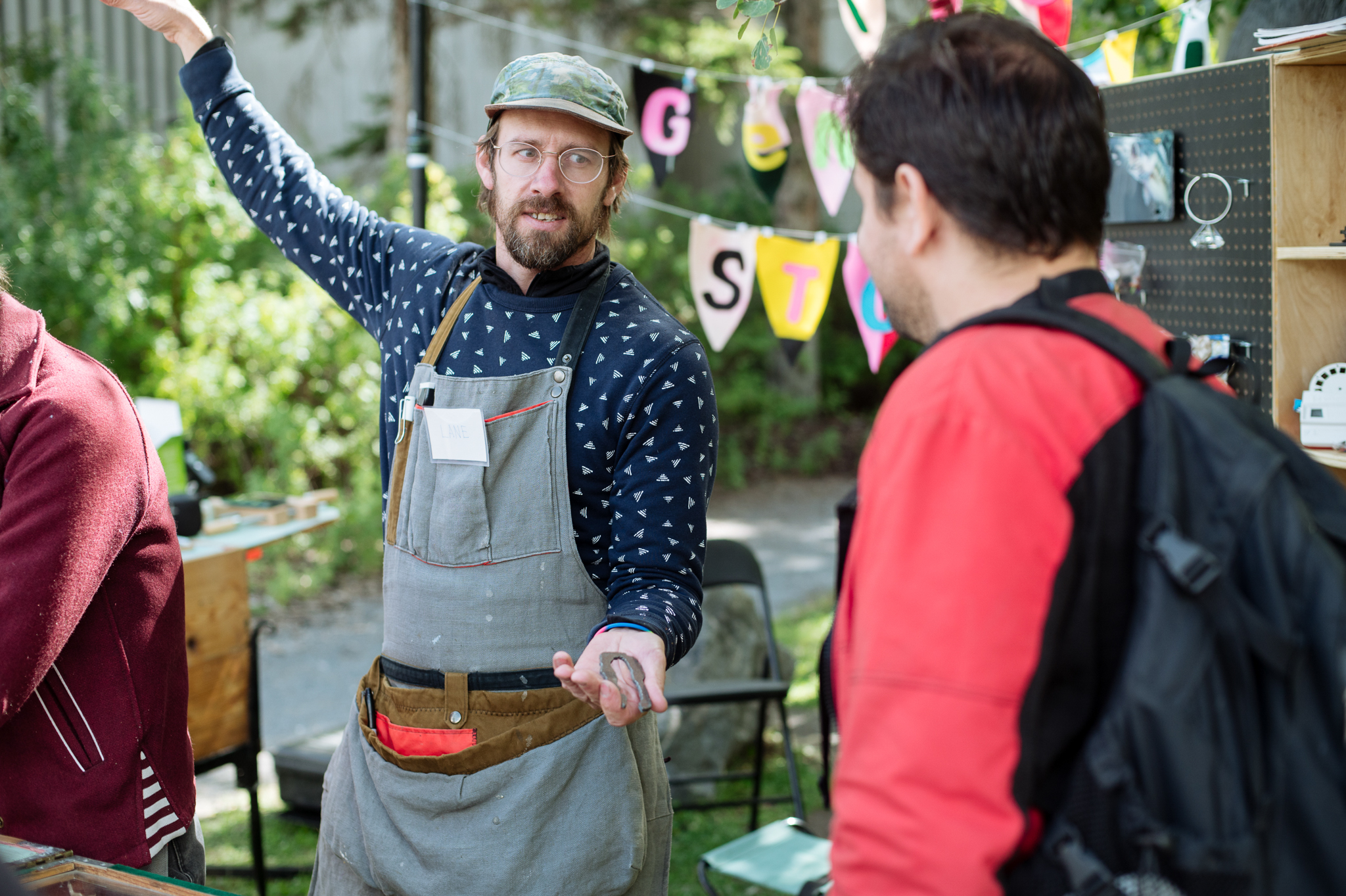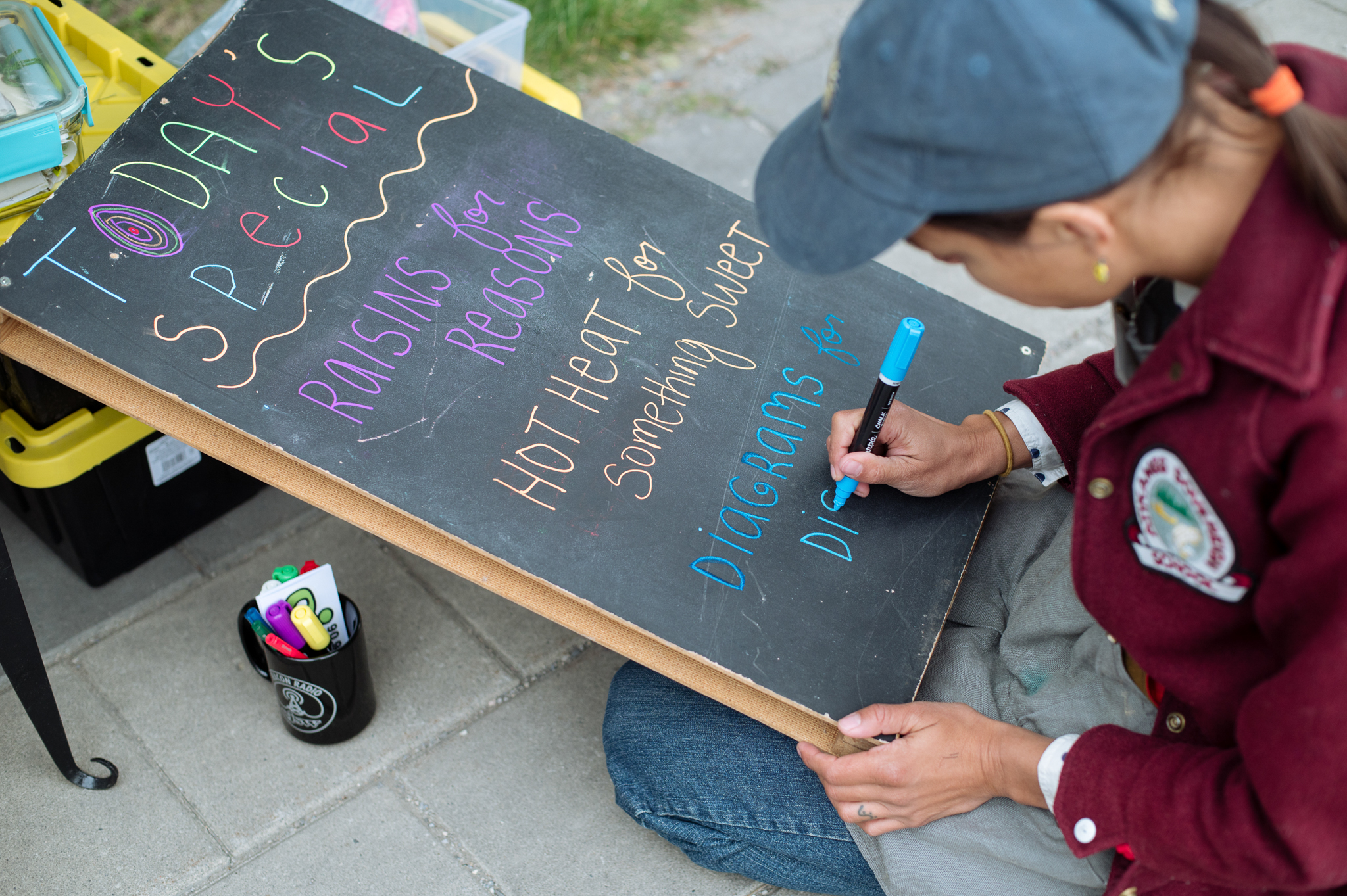 We are Lane Shordee and Nikki Martens, a creative duo investigating urban sustainability, ecology, and the economy via performance & installation. Our General Store is the first pop-up store that trades in the eight different forms of capital: Material (M), Intellectual (I), Living (L), Spiritual (Sp), Financial (F), Social (So), Experiential (E), and Cultural (C). At The General Store we recognize that it is the sum of these eight forms that contribute to a thriving, holistic, and sustainable community. The store becomes a research tool to see how these different forms of capital intermingle and coexist. Each iteration of the store begins with a varied stock of goods that gets us going: coffee, jokes, pins, and haircuts for example; but our inventory is primarily sourced from what the community has to offer and is willing to trade. These trades are documented within our sacred ledger book, which acts as an organic narrative of interactions. Past recordings include: “a beet for a beat”, “witch protection for craft supplies”, and our ever-popular “coffee for a joke”. Trades range from the ephemeral to the tangible, and together become an all day act of participant/artist based performances driven by the question of value. Fleeting goods, such as life stories or sage advice are collected as audio or video, which can then be traded back to participants in the form of ‘Cultural (C)’ or ‘Intellectual (I)’ capital. Physical objects become vectors for the exchange of ideas. Ultimately we are asking our beloved customers what has value to them, how do we measure that value, and how do we come to an equally beneficial exchange?